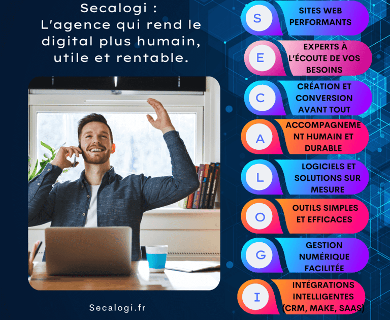 💬 Avec Secalogi, je vous accompagne pour créer, réparer, organiser et faire briller votre présence en ligne sans jargon ni prise de tête.